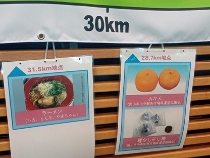 ↑ コース途中にあるエイドの案内です。30キロ過ぎた地点でラーメンが提供されます。