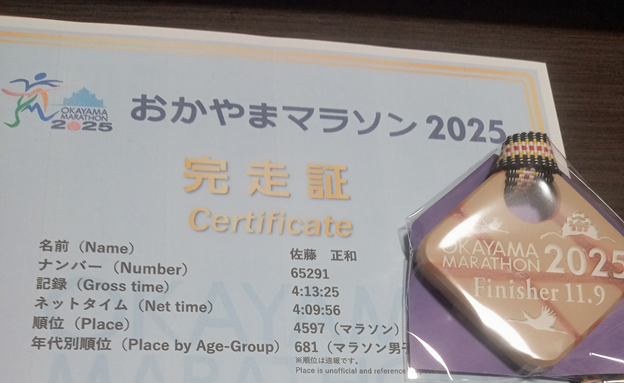 サブ4は叶わなかったものの、過去出走したフルマラソンの中で一番良いタイムです。