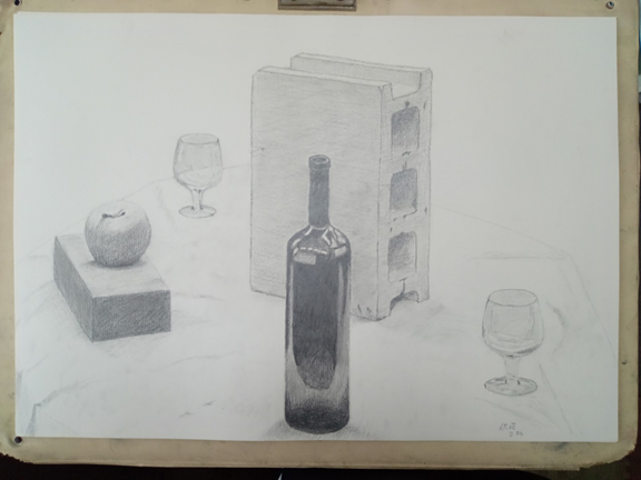 今年の春から夏にかけて受講したデッサン入門講座で描いた静物画です。